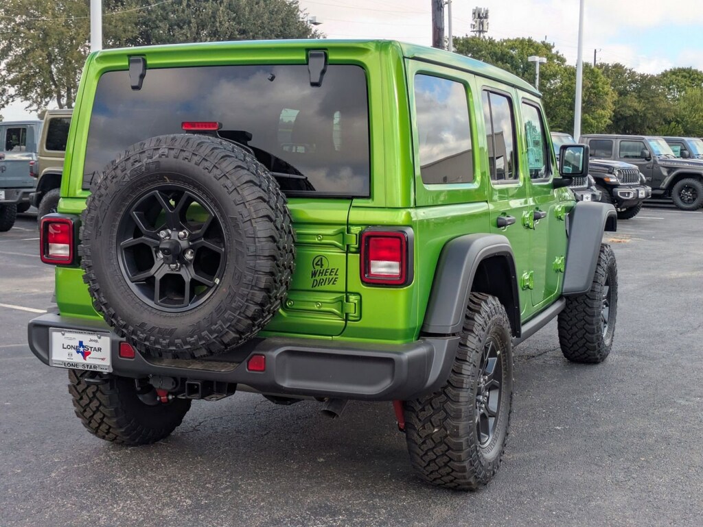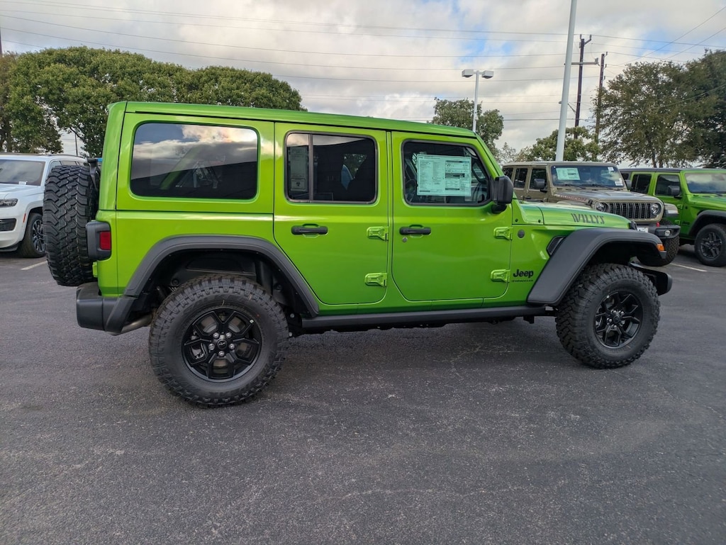 This Jeep WRANGLER UNLIMITED boasts a Regular Unleaded V-6 3.6 L/220 engine powering this Automatic transmission. TRANSMISSION: 8-SPEED AUTOMATIC (850RE) -inc: Adaptive Cruise Control w/Stop, Anti-Lock 4-Wheel Disc Brakes, Integrated Radar Camera Module (IRCM), Dana M200 Rear Axle, Selec-Speed Control, SKY 1-TOUCH POWER TOP -inc: Rear Window Defroster, Rear Window Wiper/Washer, Removable Rear Quarter Windows, Power Top Quarter Window Storage Bag, QUICK ORDER PACKAGE 24W WILLYS -inc: Engine: 3.6L V6 24V VVT UPG I w/ESS, Transmission: 8-Speed Automatic (850RE), 7 & 4 Pin Wiring Harness, Conventional Differential Front Axle, 4-Wheel Drive Swing Gate Decal, Black Grille, Injection Molded Black Rear Bumper, Dana M210 Wide HD Tube Front Axle, Daytime Running Lamps LED Accents, Front LED Fog Lamps, LED Premium Reflector Headlamps, E-Locker Rear Axle, Corning Gorilla Glass, Security Alarm, Class II Receiver Hitch, Mold In Color Bumper w/Gloss Black, Advanced Brake Assist, Automatic Headlamps, Off-Road Plus Mode, Willys Hood Decal, Full Speed Forward Collision Warning Plus, Rock Protection Sill Rails, 97 MPH Vehicle Max Speed Calibration, Power Heated Mirrors, Enhanced Adaptive Cruise Control, Auxiliary Switches, Dana M220 Wide Rear Axle, Molded in Color Rubicon Highline Flare, Premium Wrapped Steering Wheel, Sun Visors w/Illuminated Vanity Mirrors.